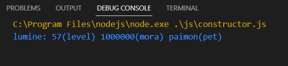 console.log(this.username + ': ' + this.level + '(level) ' + this.mora + '(mora) ' + this.pet + '(pet)')