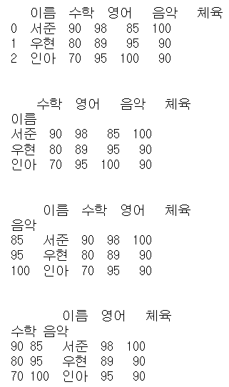 DataFrame 객체.set_index(['열 이름'] 또는 '열 이름')