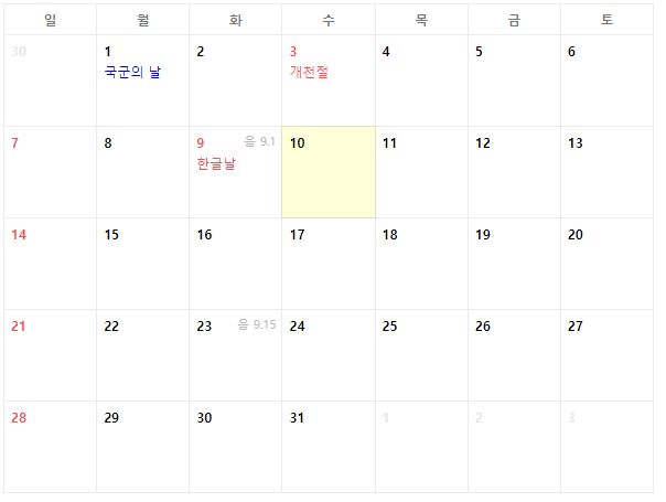오늘에 해당하는 날짜에는 border를 다른 색으로 처리하고 background 컬러도 다른 색으로 처리한다.