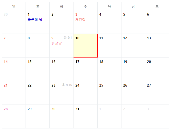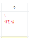 그리고 내용 셀의 border를 top과 left에만 설정한 이유는 오늘에 해당하는 날의 border가 온전히 보이게 하기 위해서이다.
