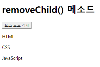 removeChild() 메소드는 자식 노드 리스트에서 특정 자식 노드를 제거한다.