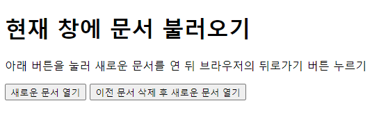 <p>아래 버튼을 눌러 새로운 문서를 연 뒤 브라우저의 뒤로가기 버튼 누르기</p>