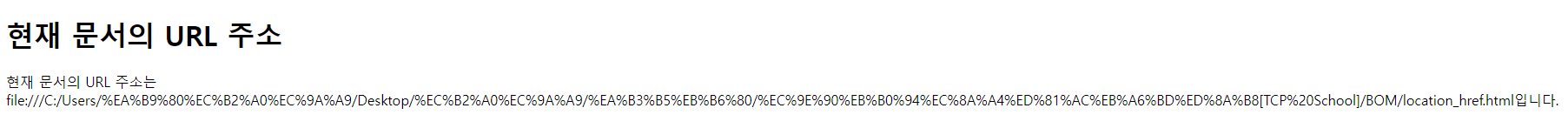 document.write('현재 문서의 URL 주소는 ' + location.href + '입니다.');