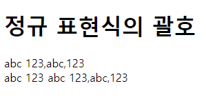 따라서 해당 문자열에서는 각각 첫 번째 'abc'와 '123'이 검색되어 저장된다.