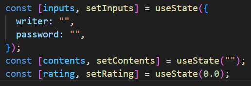 onChangeWriter 함수와 onChangePassword 함수를 onChangeInputs 함수 하나로 대체할 수 있게 되었습니다.