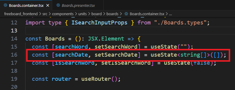 날짜 검색 기능을 구현하기 위해 searchDate state를 추가했습니다.