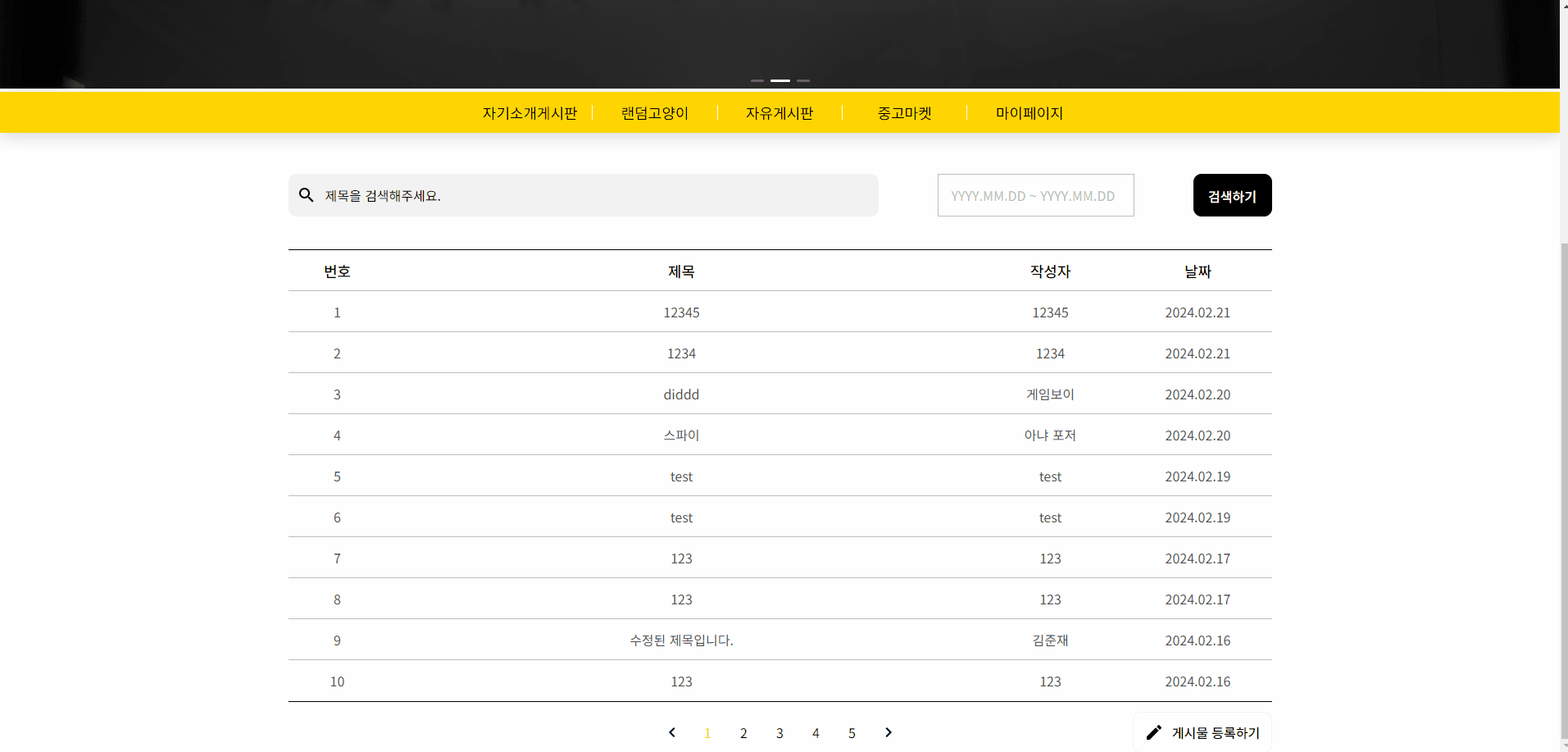 - 기간을 입력하면 기간 내에 작성된 게시물들이 검색됩니다.