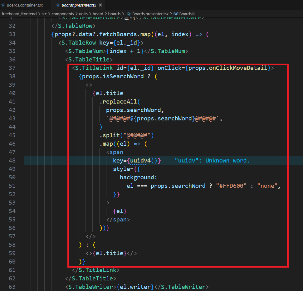 isSearchWord state가 true일 때만 키워드를 강조합니다.