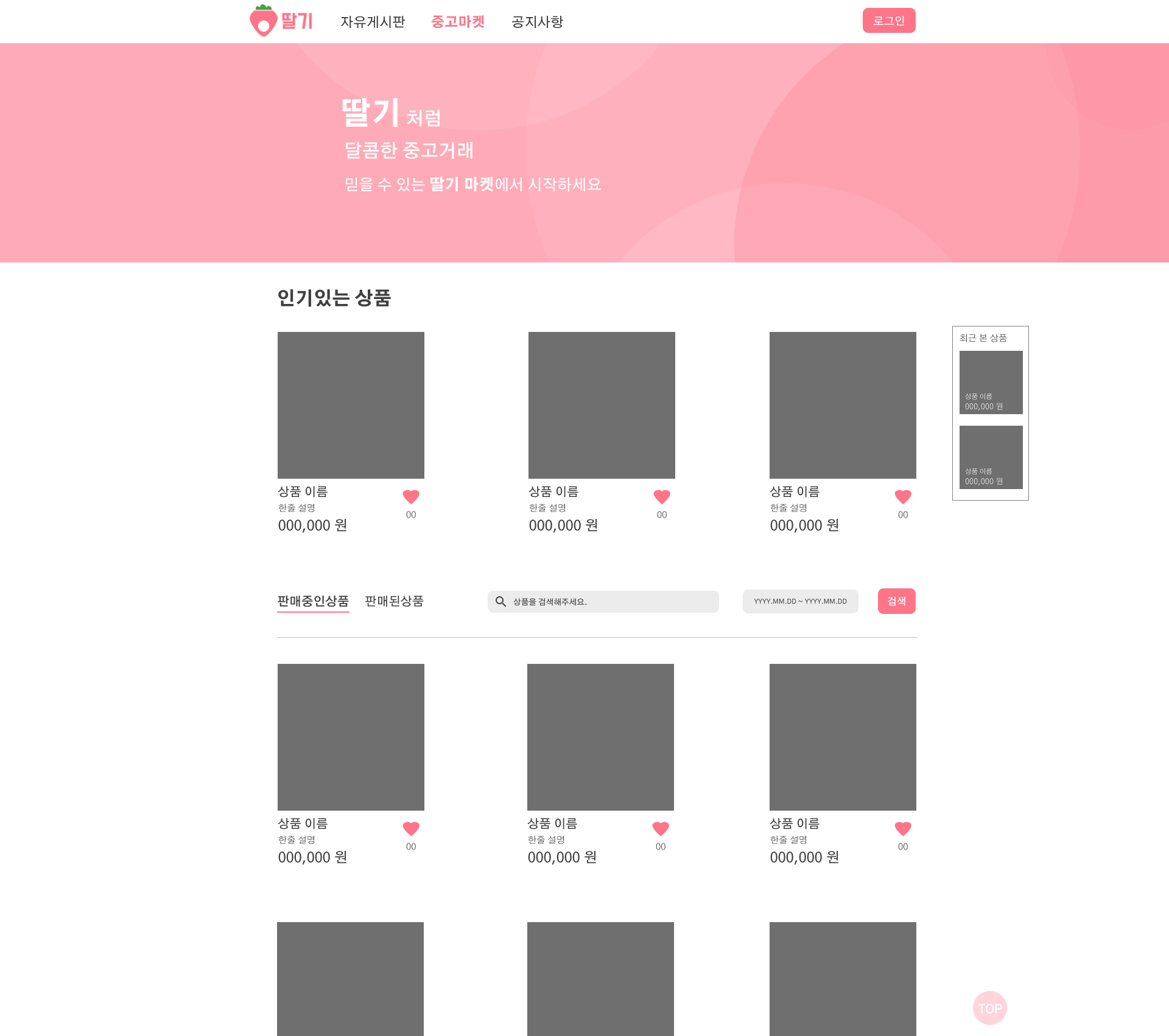 이후부터 포트폴리오의 이름은 딸기마켓으로 수정합니다.