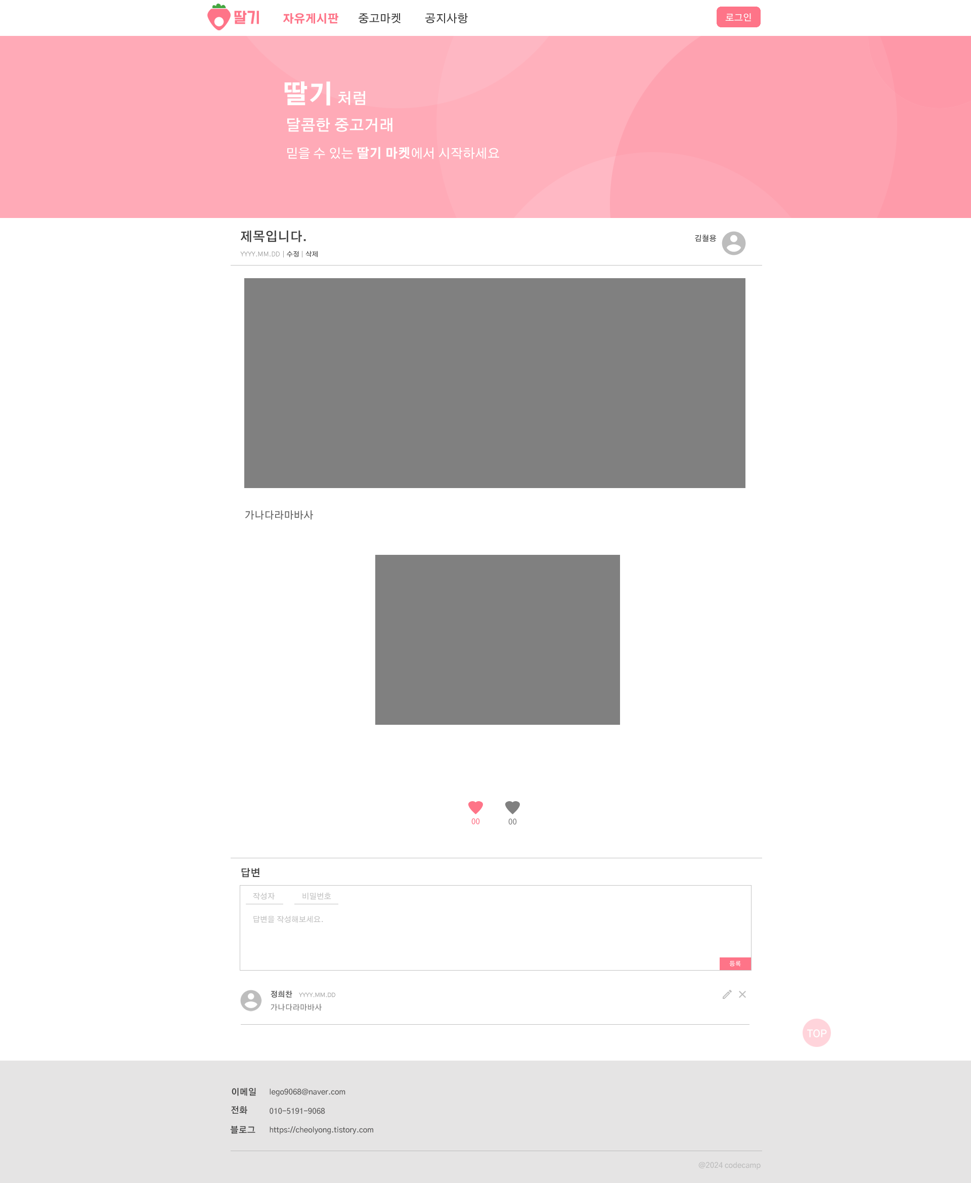 디자인 또한 코드캠프에서 제공해주는 피그마 사이트를 기준으로 제작했습니다.