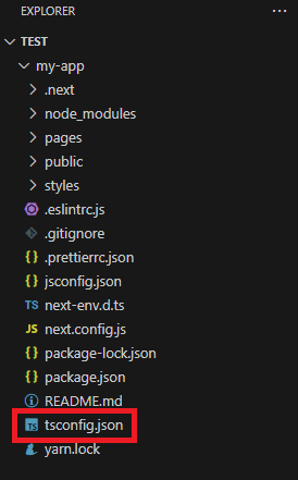 그러면 next.js가 자동으로 tsconfig.json 파일의 내용을 채워준다.
